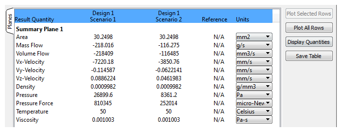 You can compare the pressure drop in the two scenarios, on the Planes tab:
