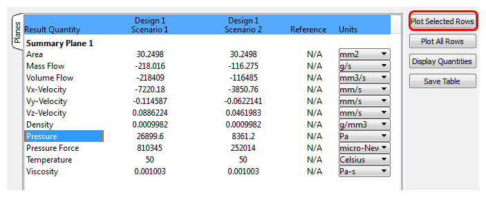 To plot the pressure, click on Pressure, and click Plot Selected Rows.
