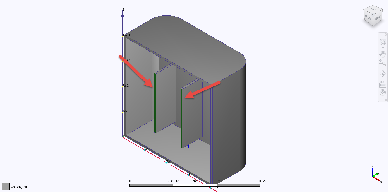 Note: While the buttons are being held down, the surfaces where parts contact each other will be highlighted green. Notice that there is no air volume on the inside, and the bottom of the housing doesn't touch the top housing part. This confirms what we observed in the Model Gaps of the Model Assessment tool.