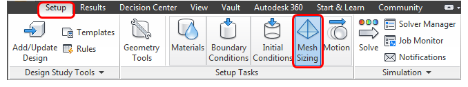 Click Mesh Sizing from the Setup tab:
