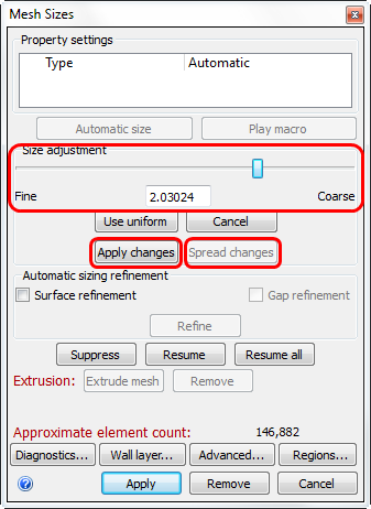 This step coarsens the mesh on the three capacitors. We do this because the default sizing is finer than needed. Making the mesh more coarse reduces the overall calculation time of the analysis.