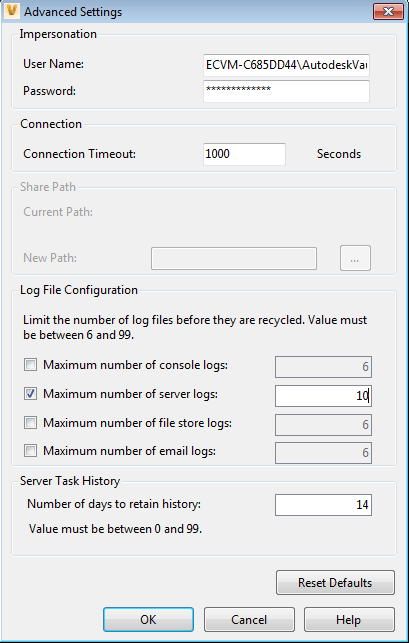 - Select the check box for the log type for which you want to modify the display limit and enter a new value.