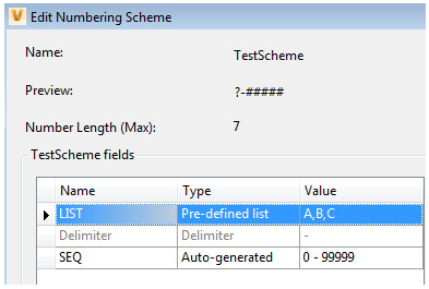 The following sample implementation of GetNewFileName uses the numbering scheme TestScheme from above and the value entered in the Title as a parameter for the numbering scheme.