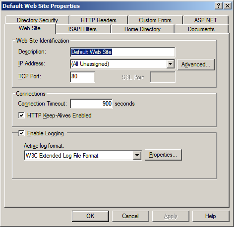 - On the Web Site tab, select the Enable Logging (if it is not already selected).