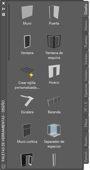 Las paletas personalizadas creadas por el administrador de CAD y otros usuarios pueden contener también herramientas de hueco con propiedades personalizadas según las normas de una empresa o proyecto.