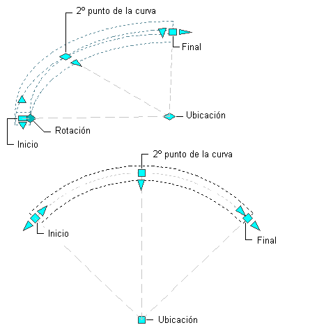 Pinzamientos de ubicación y rotación para una viga o riostra curva
