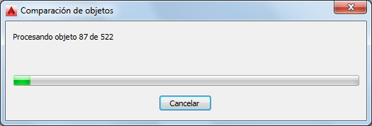 La barra de progreso Comparación de objetos muestra el número de objetos que se están comparando a medida que se procesan. Para generar los resultados, deje siempre que finalice el proceso de comparación de dibujos.