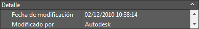 La fecha en que se modificó el dibujo seleccionado y el nombre de la persona que hizo los cambios se muestran al seleccionar un dibujo de la carpeta de revisión o de proyecto.
