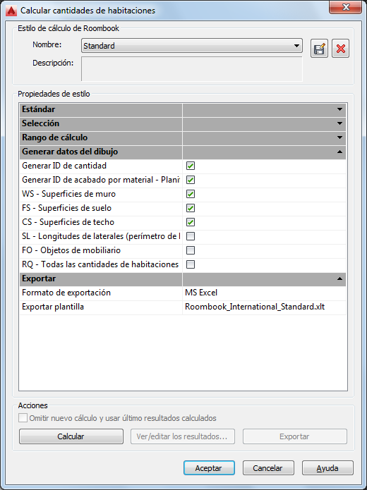 - En el cuadro de diálogo Calcular cantidades de habitaciones, seleccione las siguientes opciones:
