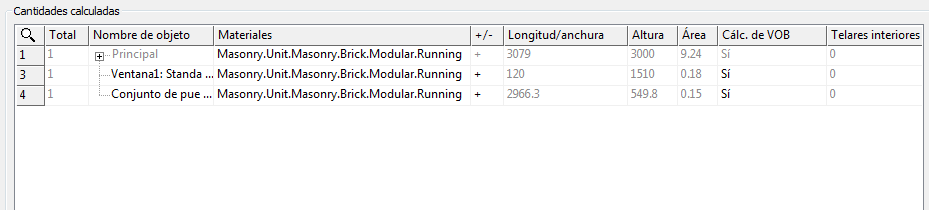Un ejemplo se puede representar cuando las ventanas y puertas adyacentes forman una unidad, y también han de calcularse como una unidad. Para cambiar las reglas de cálculo de forma global, modifique los parámetros de cálculo y vuelva a calcular las cantidades de habitaciones.