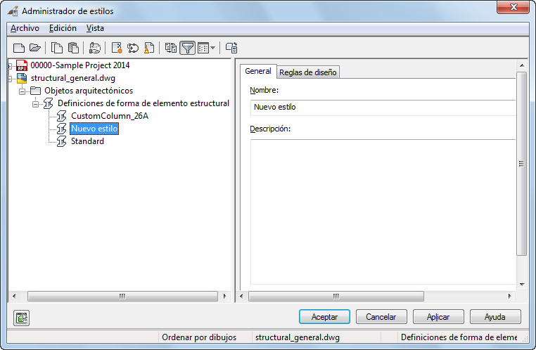 - Pulse Aceptar para agregar la nueva forma a la lista Definiciones de forma de elemento estructural y cerrar el Administrador de estilos.