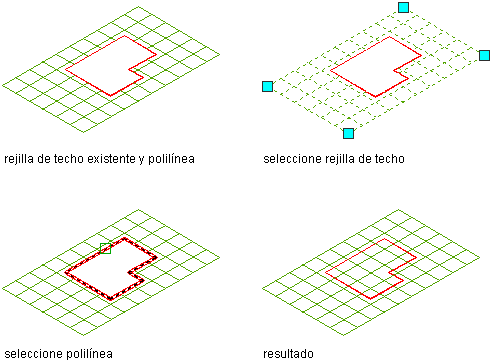 .. El agujero se elimina de la rejilla de techo. Sin embargo, la polilínea permanece en el dibujo. Si es necesario, puede suprimirla.
