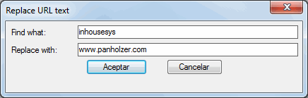 Se puede especificar una dirección URL completa o una parcial. Por ejemplo, puede reemplazar todas las referencias de hipervínculos .com por .net, o bien puede sustituir una dirección URL interna por una de un sitio web externo en una única operación.