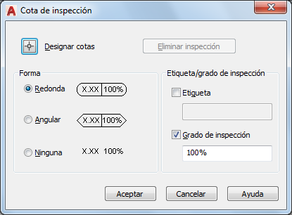 Controla la forma del marco que se dibuja alrededor de la etiqueta, el valor de cota y el grado de inspección de la cota de inspección.