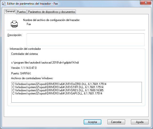 - El nombre de la impresora del sistema (si el trazador configurado es la impresora del sistema).
