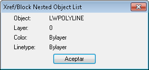 Muestra el tipo, el nombre de bloque, el nombre de capa, el color y el tipo de línea de un objeto anidado en un bloque o una refX.