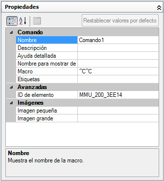 - En el cuadro Descripción, escriba una descripción del comando. El valor se mostrará en la barra de estado o en una información de herramientas.