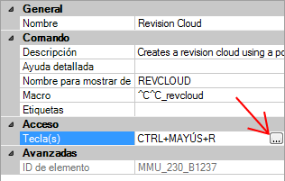 4. En el panel Propiedades, haga clic en el cuadro Tecla(s) y, a continuación, haga clic en el botón [] para abrir el cuadro de diálogo Métodos abreviados.