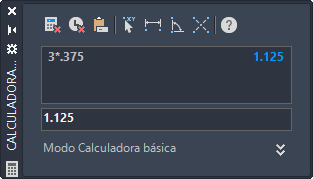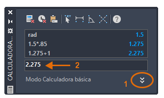 Una función especialmente útil es Pegar valor, que copia el resultado actual de la calculadora en la solicitud de la ventana de comandos. Puede tratarse de un valor calculado de radio, distancia o desfase.