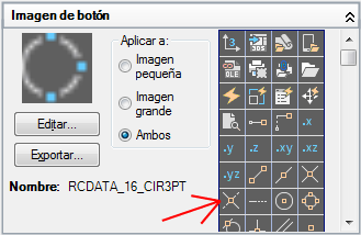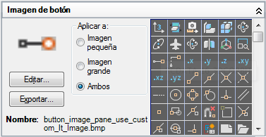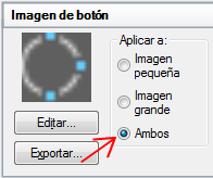 En el panel Imagen de botón, bajo Aplicar a, seleccione una de las tres opciones de asignación de imágenes: Imagen pequeña, Imagen grande o Ambas.