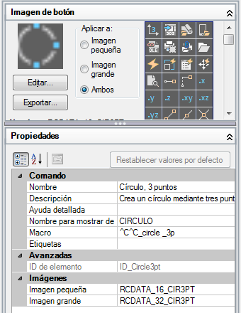 Se pueden asignar imágenes estándar e imágenes personalizadas a un comando.