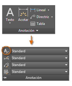 Al igual que otros elementos de anotación, el texto de líneas múltiples proporciona una gran cantidad de parámetros. Puede guardar estos parámetros como un estilo de texto mediante el comando ESTILO y, a continuación, acceder a los estilos de texto haciendo clic en la flecha de la lista desplegable del grupo Anotación. El estilo de texto actual se muestra en la parte superior de la lista desplegable.