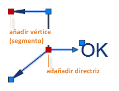Los menús de pinzamientos aparecen cuando se sitúa el cursor sobre el pinzamiento de directriz y de extremo de cota. En estos menús, puede añadir segmentos de directriz o directrices adicionales.