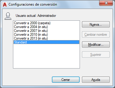 CONVERTDWG (comando) Buscar: Configuraciones de conversión