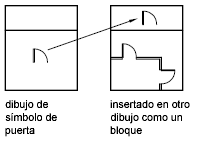 Un bloque es básicamente una definición de bloque que incluye el nombre de bloque, la geometría de bloque, la ubicación del punto base que se utiliza para alinear el bloque al insertarlo y los datos de atributo asociados. Puede definir un bloque a partir de la geometría del dibujo en el cuadro de diálogo Definición de bloque o bien mediante el Editor de bloques. Una vez creada la definición de bloque, puede hacer referencia a ella en el mismo dibujo o en otro.