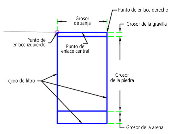 | L2 | Gravilla, TejidoFiltro | Capa de gravilla; si el parámetro Incluir tejido de filtro se establece en Sí, se incluye el tejido del filtro |