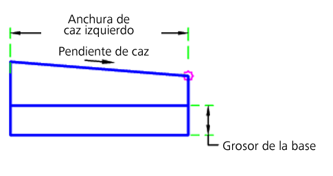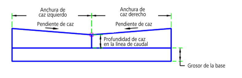 | Grosor de la base | Grosor de la base bajo el caz | Numérico, positivo |