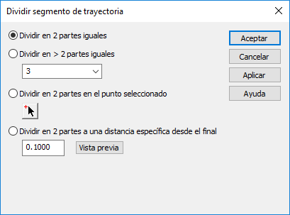Para abrir el cuadro de diálogo de Dividir segmento de trayectoria, haga clic en Dividir segmento