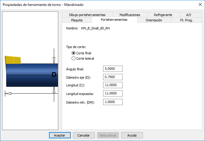 Nota: Para cambiar el Nombre de la herramienta, utilice la pestaña de Plaquita/Tipo.