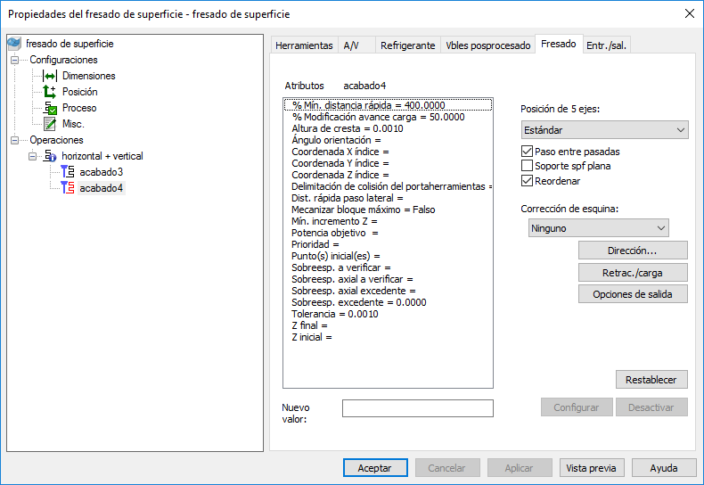 Z final — Introduzca la distancia a lo largo del eje Z por debajo de la cual la operación no fresa.