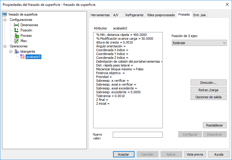 Z final — Introduzca la distancia a lo largo del eje Z por debajo de la cual la operación no fresa.