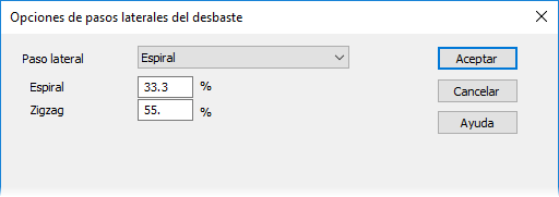 Haga clic en el botón de Opciones de pasos laterales de la pestaña de Paso lateral para abrir el cuadro de diálogo de Opciones de pasos laterales del desbaste: