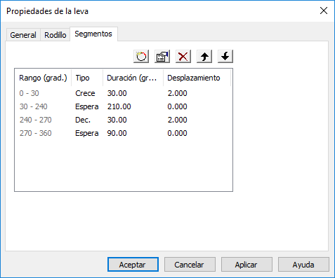 Las levas cilíndricas (o de tambor) se especifican como se haría con una leva normal. Consulte Levas para más información acerca de levas de movimiento alternativo. En levas simples, el crecimiento y el decrecimiento son distancias radiales. En levas cilíndricas, los desplazamientos de crecimiento y decrecimiento se producen a lo largo del eje de envoltura.