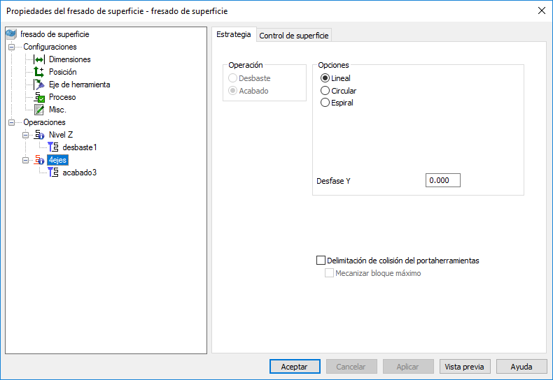 Desfase Y — Introduzca una distancia para evitar cortar en el centro de la herramienta.