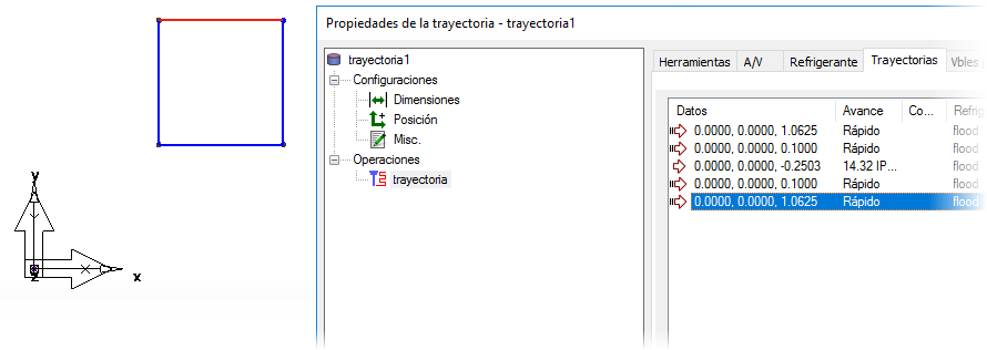 Es posible utilizar la pestaña de Trayectorias del cuadro de diálogo de Propiedades de figura de fresado para editar figuras de trayectoria.