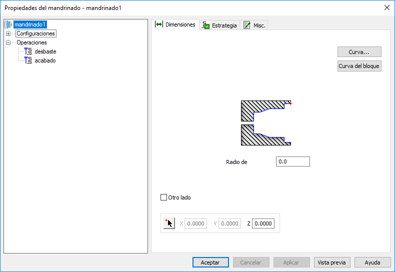 Utilice la pestaña de Dimensiones para configurar las dimensiones de una figura de mandrinado.