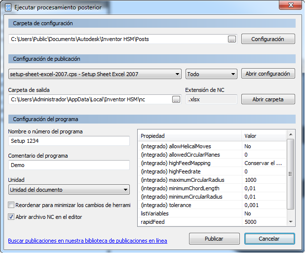 Autodesk HSM se suministra con un gran número de posprocesadores personalizables que se pueden invocar al seleccionar una o más operaciones del Navegador de CAM y al hacer clic en la