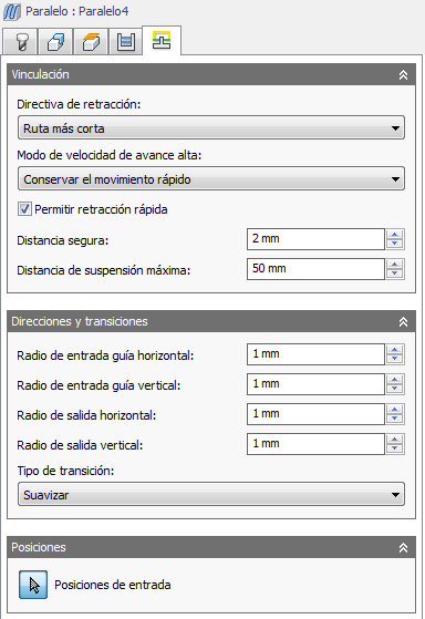 Radio del arco vertical que suaviza el movimiento de entrada a medida que avanza hasta la propia ruta de herramienta.