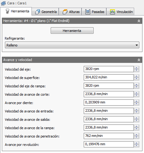 Parámetros de corte del eje y velocidad de avance.