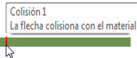 Si se produce una colisión entre el eje o el soporte con el material, aparece un marcador de color rojo en el control de la secuencia temporal con una información de herramientas que describe la colisión.