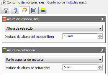 El Desfase de altura de retracción se aplica y guarda relación con la selección de Altura de retracción en la lista desplegable anterior.