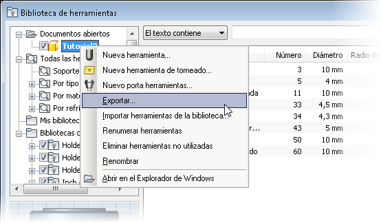 Para exportar una tabla de herramientas del documento a un archivo de biblioteca, haga lo siguiente:
