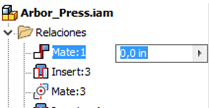 Relaciones muestra una lista secuencial de todas las uniones y restricciones del ensamblaje. Puede cambiar o medir rápidamente la geometría de restricción seleccionando un elemento de la carpeta Relaciones. La opción de menú del navegador Editar valores en el navegador debe estar habilitada.