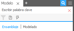 Buscar abre un cuadro de búsqueda que permite encontrar los objetos que coincidan con los criterios de búsqueda. Utilice Buscar para localizar relaciones no válidas, componentes u operaciones desactivados, nombres o valores de parámetros de bocetos o cualquier otra combinación de criterios seleccionada.