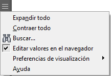 El menú contextual (al que se accede haciendo clic con el botón derecho del ratón) presenta operaciones que pueden realizarse en el componente, la operación o la relación en el navegador. En función de la configuración del navegador y del elemento seleccionado, estarán disponibles todas o algunas de las opciones.