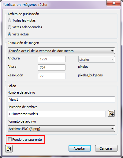 . En la parte inferior del cuadro de diálogo, active la casilla de verificación para Fondo transparente.